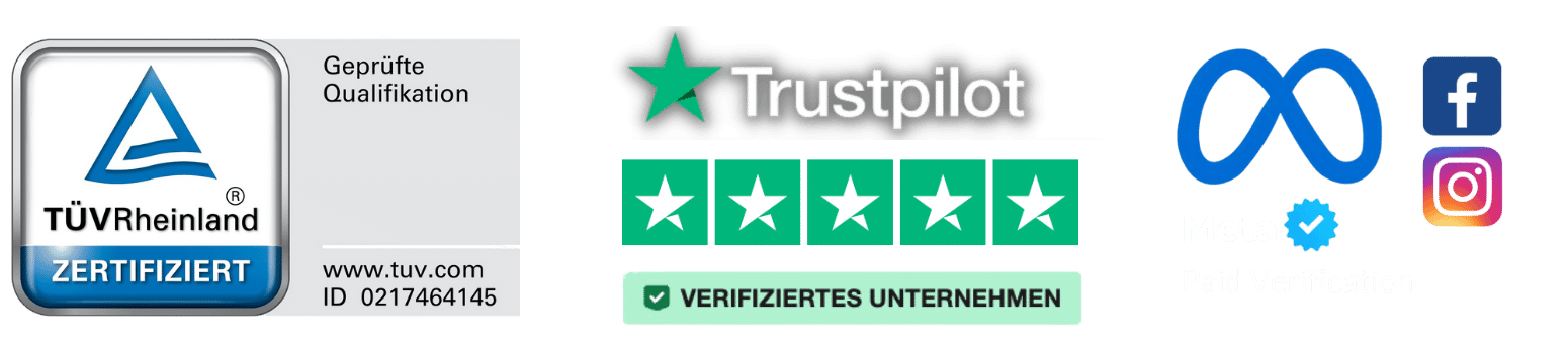 Mit Zertifizierungen von TÜV Rheinland, Meta und Google garantieren wir höchste Qualitätsstandards und fundiertes Know-how.